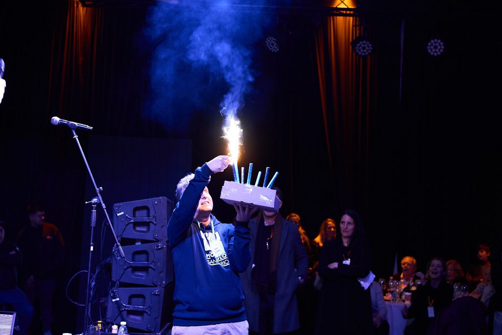 Así cerraba el video y, sin pausa, Tomi Sicouly subía al escenario en representación de Módulo Sanitario para dar la bienvenida, agradecer a cada persona presente y contar cómo trabajamos la problemática sanitaria. Al instante, Juan Quelas encendía las velas de la torta del décimo cumpleaños, mientras el salón entero cantaba el feliz cumpleaños a todo pulmón.