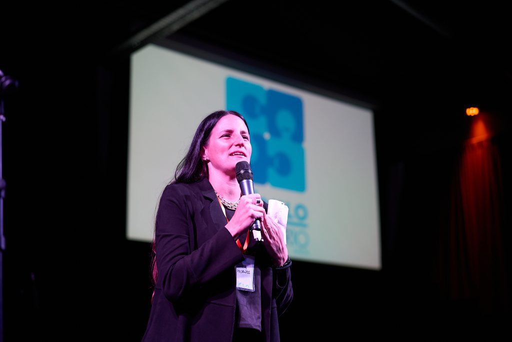 Catalina Hornos, Directora General de Haciendo Caminos, también tomó la palabra para compartir por qué es importante sostener este trabajo. Gracias a sus palabras, muchas personas se animaron a hacer su primera donación, y hoy ya son parte de esta red que busca transformar la vida de las familias sin baño.