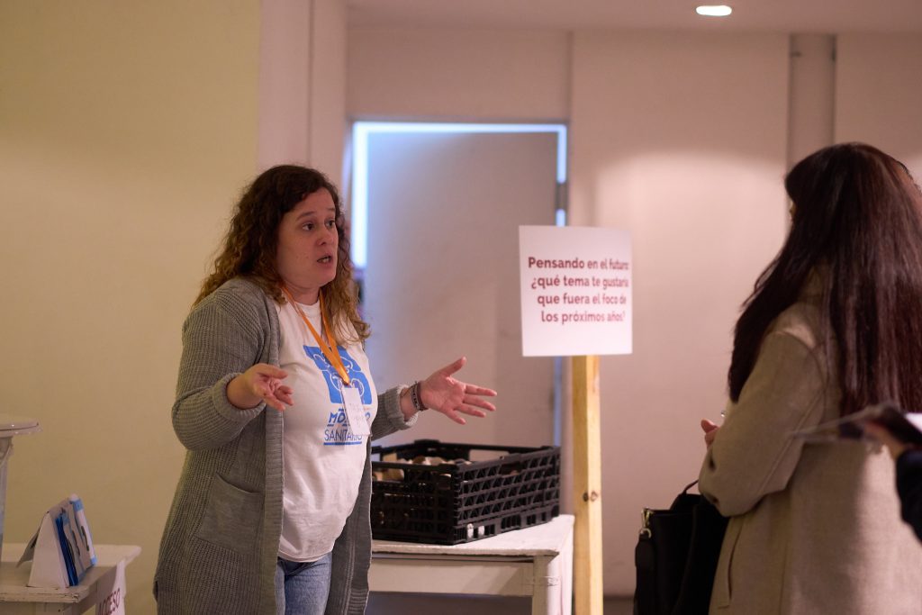 Al subir las escaleras, voluntarios y voluntarias contaban y mostraban nuestro trabajo de una forma impecable: mensajitos en post-its, fotos llenas de alegría, una pieza audiovisual, una camiseta para dejar nuestra firma a forma de huella. Cada paso fue pensado como parte de una experiencia para que todas las personas puedan conocer en profundidad la esencia de nuestro trabajo.